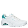 Skechers Uno Pop-Back dames sneaker. Iedereen kent de Skechers Uno wel: comfort en stijl in één. Dit model met contrasterende hiel valt leuk op. Dit model is uitgevoerd in imitatieleer en voorzien van perforatie accenten op de neus en kraag. Dit zorgt voor een snelle warmte-afvoer en goede doorademing. De binnenvoering is van textiel en voorzien van een gewatteerde enkelkraag voor meer comfort rond de hiel en enkel.