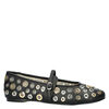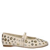 Steve Madden Rejoice-S dames ballerina. Deze trendy ballerina is niet voor de mensen met tryphofobie, maar leuk is hij wel! Uitgevoerd in imitatieleer met metalen ringetjes voor een unieke look. De binnenkant is afgewerkt met een nylon voering voor meer comfort tijdens het dragen. Voorzien van een imitatieleren voetbed met dempende laag. Afgewerkt met een dunne rubberen loopzool.