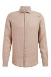 Een regular fit overhemd van linnen met een knoopsluiting. Het model heeft een kraag en lange mouwen.