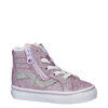 Vans Sk8-Hi Reissue meisjes sneaker. Vans zijn er voor jong en oud! Ook de kleine skatertjes onder ons kunnen nu genieten van de klassieke Vans sneakers. Uitgevoerd in textiel wat helemaal bedekt is met glitters. Gevoerd met textiel wat een comfortabel draagevoel biedt. Het foam-voetbed biedt een zachte demping tijdens het lopen. Met de gripvaste loopzool met kenmerkend wafel-patroon loop je stevig en stabiel.