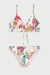 Een gevoerde bikinitop met een dessin en kraaldetail. Het model heeft een striksluiting en verstelbare spaghettibandjes. De pads zijn uitneembaar.