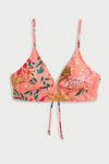 Een gevoerde bikinitop met een dessin. Het model heeft een striksluiting en verstelbare spaghettibandjes.