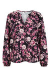 Een regular fit blouse van geweven kwaliteit met gesmokte boorden. Het model heeft een V-hals en lange mouwen.