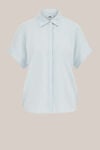 Regular fit, kraag, blinde knoopsluiting, korte mouwen, heeft een all over fijn patroontje in de stof verweven. Soepelvallend.