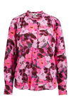 Een regular fit blouse van viscose met een dessin en ruches. Het model heeft een ronde hals, lange mouwen en knoopsluiting.