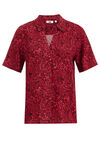 Een regular fit blouse van viscose met een dessin en knoopsluiting. Het model heeft V-hals en korte mouwen.