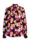 Een regular fit blouse van geweven kwaliteit met een dessin en knoopsluiting. Het model heeft een ronde hals en lange mouwenn. De blouse heeft een bijpassende sjaal.