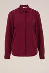 Een regular fit blouse van gerecycled polyester met stretch, een subtiel structuur en blinde knoopsluiting. Het model heeft een normale kraag en lange mouwen.