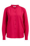 Een regular fit blouse van viscose met een structuur en een knoopsluiting. Het model heeft een ronde hals met ruches en lange mouwen.