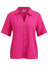 Een regular fit blouse van een linnenmix met knoopsluiting. Het model heeft een V-hals en korte mouwen.