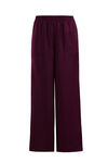 Een regular fit broek van een geweven kwaliteit met een satijnen look, twee steekzakken en een elastische tailleband. Het model heeft rechte pijpen.