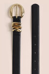 Een riem, vervaardigd uit polyurethaan, afgewerkt met een stijlvolle metalen gesp. Breedte: 3 cm.
