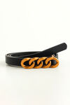 Een riem gemaakt van polyurethaan met een metalen gesp. Breedte: 1,5 cm.