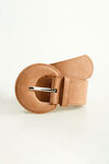 Een riem gemaakt van polyurethaan met een metalen gesp. Breedte: 5 cm.