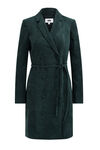 Een regular fit double-breasted blazerjurk van corduroy met toegevoegde stretch en een strikceintuur. Het korte model heeft een V-hals en lange mouwen. Gevoerd.