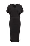 Een regular fit jurk van een acrylmix met een geribde rok. Het model heeft een V-hals, korte mouwen en valt over de knie.