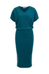 Een regular fit jurk van een acrylmix met een geribde rok. Het model heeft een V-hals, korte mouwen en valt over de knie.