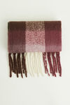 Een fijngebreide sjaal met franjes aan de zijkanten. Afmeting van de sjaal: 240 cm x 40 cm.