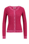 Een regular fit vest van een viscosemix met een dessin en een knoopsluiting. Het fijngebreide model heeft een ronde hals en lange mouwen.