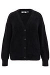 Een regular fit vest van een acrylmix met zachte structuur en knoopsluiting. Het model heeft een V-hals en lange mouwen.