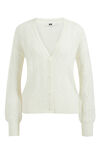 Een regular fit vest van een wolmix met een structuur en een knoopsluiting. Het model heeft een V-hals en lange mouwen.