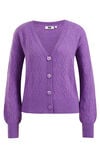 Een regular fit vest van een wolmix met een structuur en een knoopsluiting. Het model heeft een V-hals en lange mouwen.