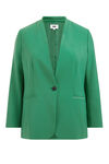 Een getailleerde blazer van een geweven kwaliteit met twee paspelzakken op de voorkant. Het model heeft een V-hals en een knoopsluiting.