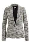 Een getailleerde blazer van bouclé kwaliteit met een knoopsluiting, een split op het achterpand en een gemêleerde look. Het model heeft normale hals, lange mouwen en paspelzakken op het voorpand.