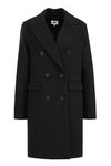 Een nauwsluitende jas van een wolmix met twee klepzakken en dubbele knoopsluiting. Het model heeft een rever kraag, een binnenzak en een split aan de achterkant.