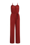 Een regular fit jumpsuit van viscose met een strikceintuur en elastische taille. Het model heeft een ronde hals en verstelbare spaghettibandjes.