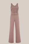 Voor avonden waarop subtiel geen optie is. Deze jumpsuit heeft een regular fit met schouderbandjes en een transparante bovenlaag met pailletten en kraaltjes. Het onderstuk heeft rechte pijpen met lichte stretch. Dansvloer, here you come!