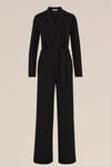 Eén item, eindeloos veel stijl. Deze jumpsuit met lange mouwen, een overslagkraag en een ceintuur zit vol details – van de fijne structuur tot de zwierige, wijde pijpen.