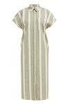 Een regular fit jurk van linnenmix met een streepdessin, blinde knoopsluiting en een borstzak. Het model heeft een rechte pasvorm, korte mouwen en een normale kraag.