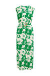 Een regular fit jurk van viscose met een dessin en ceintuur. Het model heeft een V-hals, korte mouwen en split aan de zijkant.