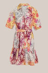 Voor een moeiteloos stijlvolle look. Deze jurk heeft een regular fit met een kraag en een V-hals met knoopsluiting. De korte mouwen geven een luchtige uitstraling en dankzij het strikceintuur sluit de taille mooi aan. De onderzijde loopt subtiel geplooid uit en de kleurrijke bloemenprint maakt het item helemaal af.