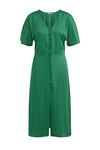 Een regular fit jurk van viscose met een satijnen look. Het model heeft een V-hals, korte mouwen, een elastische tailleband op het achterpand en een knoopsluiting.