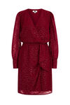 Een regular fit jurk met structuur van hoogwaardige, geweven stof. Het model heeft een elegant strikdetail, stijlvolle overslaghals en lange mouwen. De jurk reikt tot over de knie en is gevoerd.