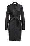 Een regular fit jurk van imitatieleer met een ceintuur en knoopsluiting. Het model heeft een normale kraag en lange mouwen. De jurk valt op de knie.