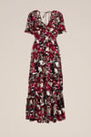 Verrijk jouw garderobe met een vleugje elegantie. Deze regular fit maxi-jurk is gemaakt van zacht viscose. Met een stijlvol volant, speels dessin en elegante V-hals met striksluiting op de voor- en achterkant, is dit item een must-have voor je garderobe. Een elastische taille zorgt bovendien voor een comfortabele pasvorm.