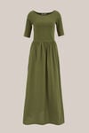 heeft een ronde hals, een nauwsluitende pasvorm en 3/4-mouwen. Het bovenstuk is gemaakt van stretch ribstof en rok bevat twee insteekzakken.