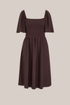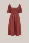 Kleed je aan zonder te hoeven nadenken. Deze midi jurk heeft een regular fit, vierkante hals, korte vlindermouwen, een geribd stretchy bovenstuk en een wijduitlopende onderkant in jersey. Verjaardag of zakelijke presentatie? Jij kiest.