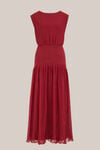 Eén item, eindeloos veel mogelijkheden. Deze jurk heeft een regular fit zonder mouwen, een ronde hals en een V-rug met fijne strikkoordjes. De taille en heup zijn licht aansluitend en de rok bestaat uit twee lagen met een golvende boord.