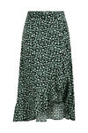 Een regular fit rok van viscose met een hoge taille met bekleed elastiek en een overslag effect met volant aan de voorkant.