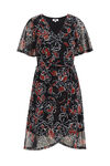 Een regular fit overslagjurk van mesh stof met een striksluiting. Het model heeft een overslaghals en korte mouwen. De jurk valt boven de knie.