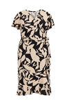 Een regular fit overslagjurk van jersey met een fijne structuur. Het model heeft een overslaghals, korte mouwen en een striksluiting. De jurk valt boven de knie.