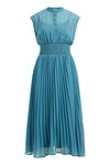 Een regular fit jurk van geweven materiaal met gesmokt elastiek in de taille en een plissé rok. Het model heeft een ronde hals, kapmouwen, een knoopsluiting en een onderjurk. De jurk valt over de knie.