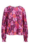 Een regular fit top van gerecycled polyestermix met een dessin. Het plissé model heeft V-hals en lange mouwen met gemokte boorden.