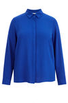 Deze regular fit blouse van gerecycled polyester heeft een blinde knoopsluiting, geweven stretch en lange mouwen met manchetten, welke voorzien zijn van een knoopsluiting.