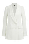 Een rechte, double-breasted blazer van geweven kwaliteit met een sjaalkraag. De blazer heeft een twee paspelzakken met klepsluiting en een decoratieve knoopsluiting onder aan de mouwen. Gevoerd.