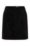 Een regular fit rok van corduroy stretch met sierknopen en een blinde ritssluiting. Het model valt boven de knie.